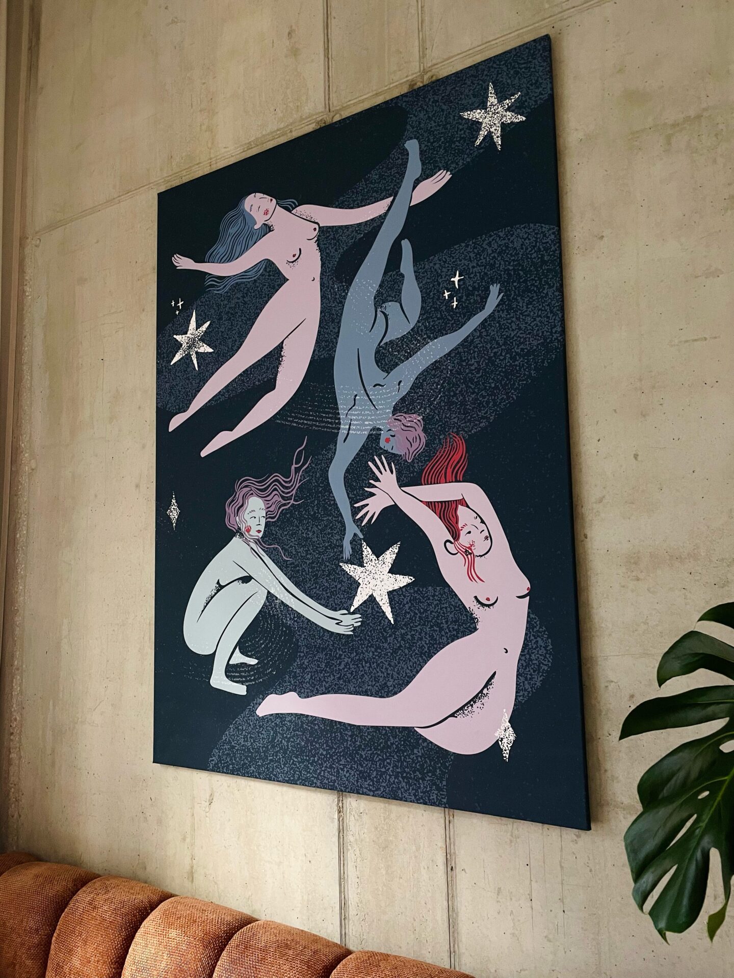 Zadávateľ ma oslovil s cieľom priniesť do interiérov odvážnejší motív a zachovať autentický rukopis mojej tvorby. Grafiky veľmi dobre fungujú ako harmonický prvok priestoru.
